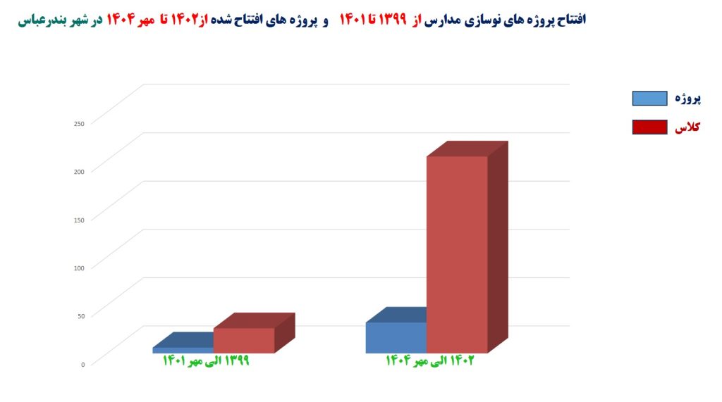 مدیرکل نوسازی، توسعه و تجهیز مدارس استان هرمزگان با اشاره به رشد 4 برابری پروژهها و رشد 6 برابری تعداد کلاسهای احداثی در 3 ساله اخیر در شهر بندرعباس ادامه داد: پروژههای مدرسه سازی در 3 ساله اخیر رشد بسیار چشمگیری داشته است که نشات گرفته از حمایت های بی شائبه و نگاه ویژه استاندار هرمزگان و رییس سازمان نوسازی مدارس کشور به مدرسه سازی در استان هرمزگان می باشد.